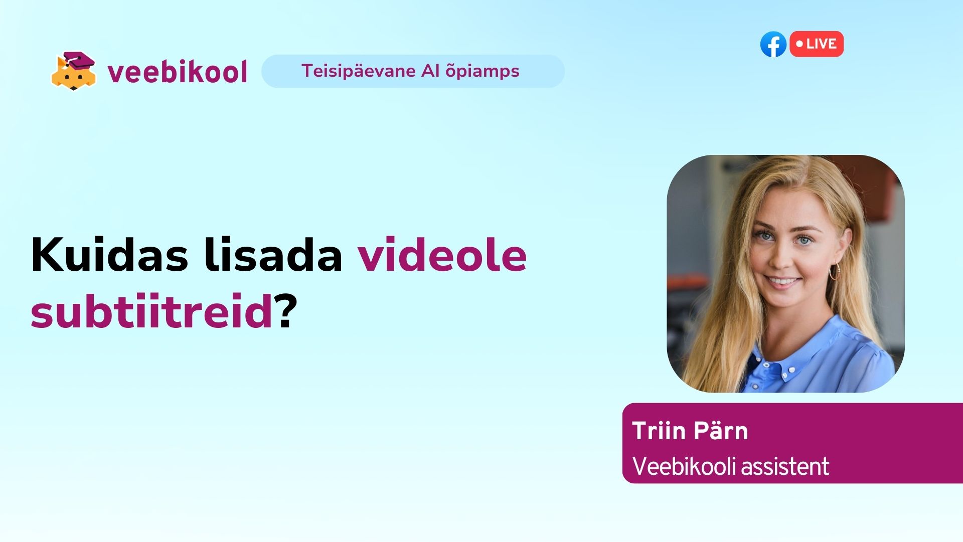? Facebook liveTUTVU KOOLITUSEGA LÄHEMALT