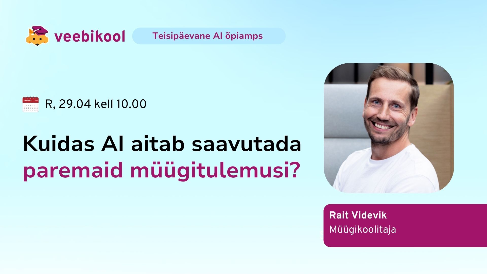 AI õpiamps: KUIDAS AI AITAB SAAVUTADA PAREMAID MÜÜGITULEMUSI? Rait Videvik