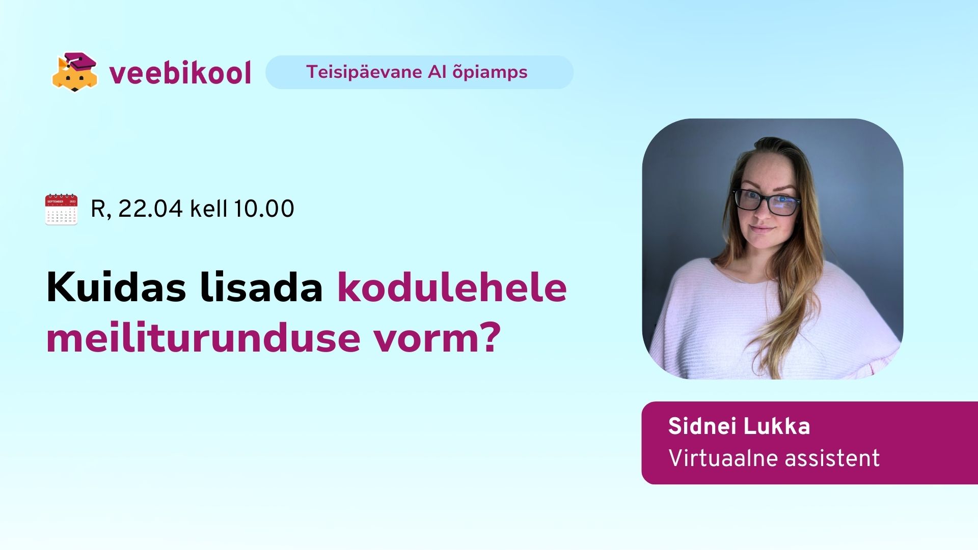 AI õpiamps: KUIDAS LISADA KODULEHELE MEILITURUNDUSE VORM? Sidnei Lukka