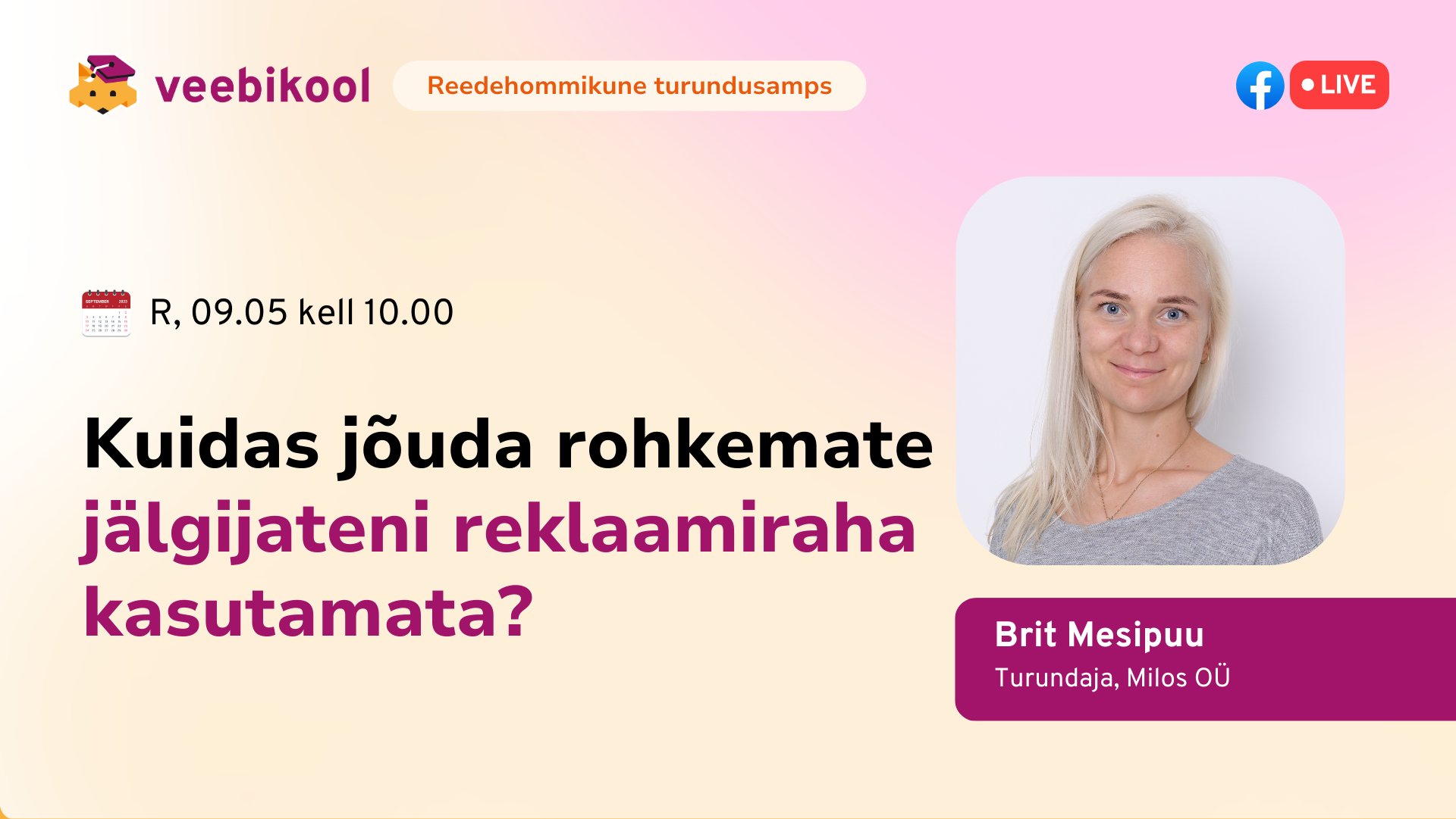 Reedene õpiamps: KUIDAS JÕUDA ROHKEMATE KLIENTIDENI REKLAAMIRAHA KASUTAMATA? Brit Mesipuu