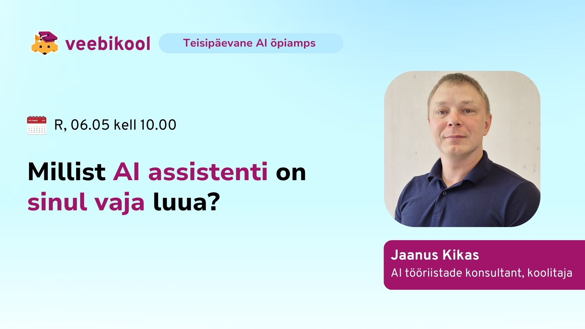 AI õpiamps: MILLIST AI ASSISTENTI ON SINUL VAJA LUUA? Jaanus Kikas