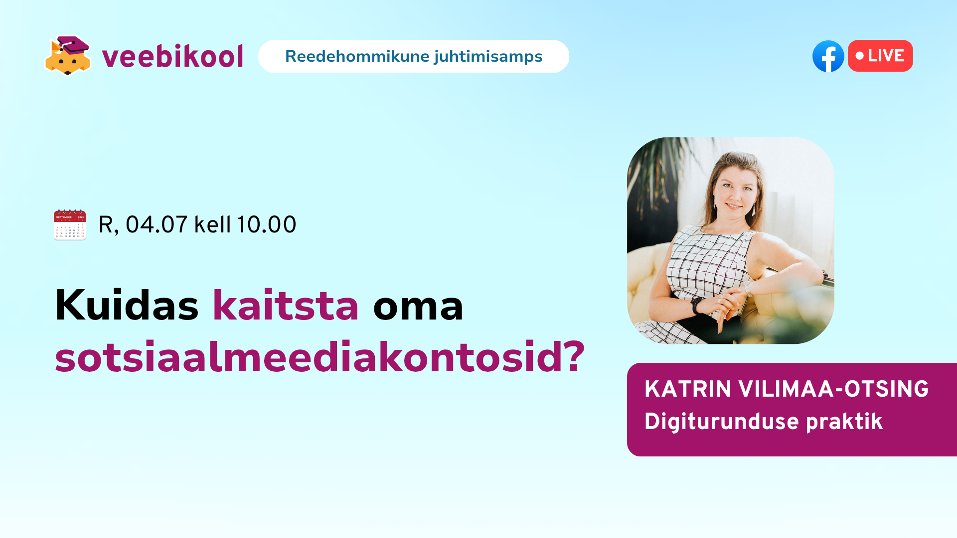 Reedene õpiamps: KUIDAS KAITSTA OMA SOTSIAALMEEDIAKONTOSID? Katrin Vilimaa-Otsing