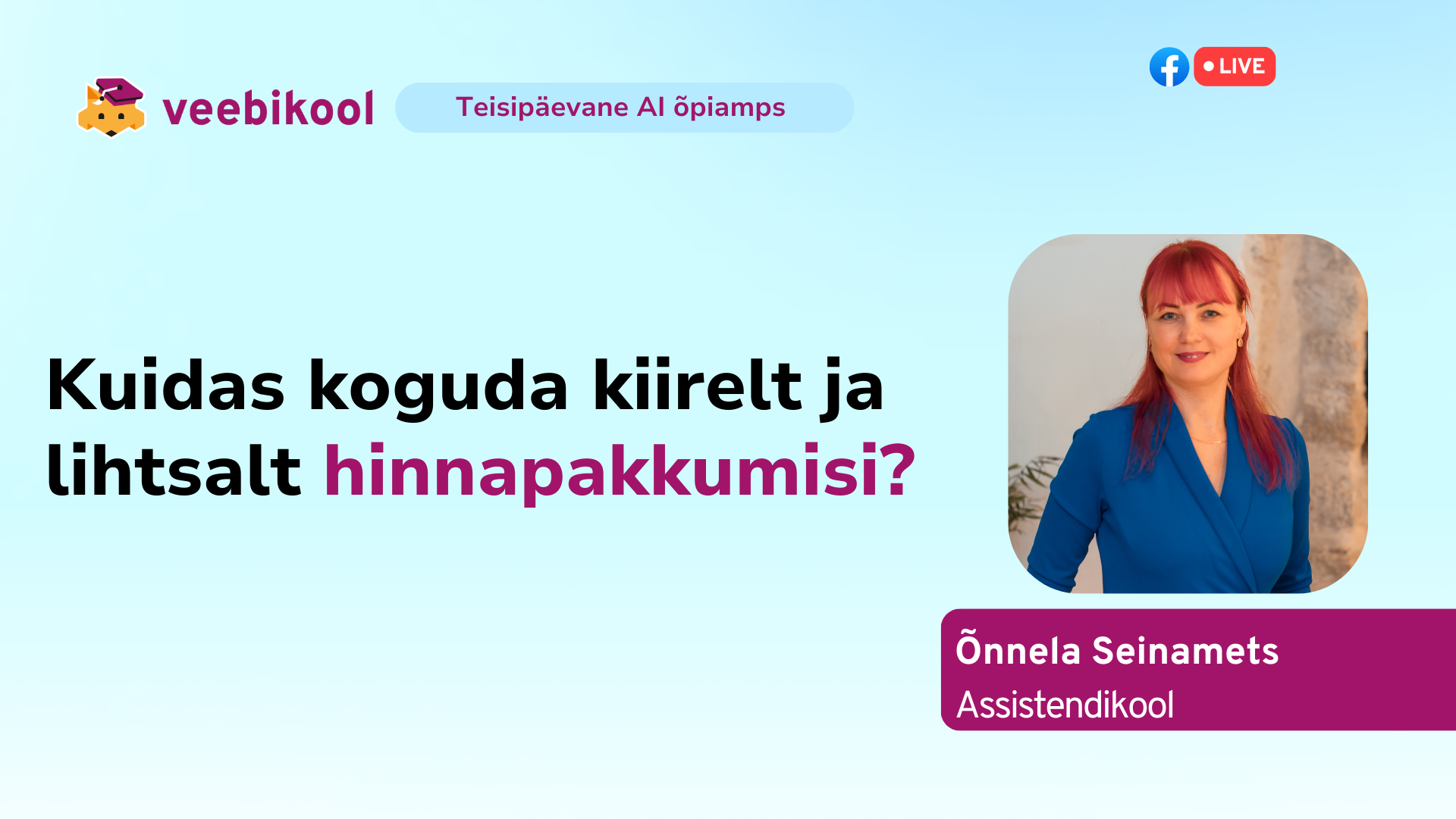 ? Facebook liveTUTVU KOOLITUSEGA LÄHEMALT