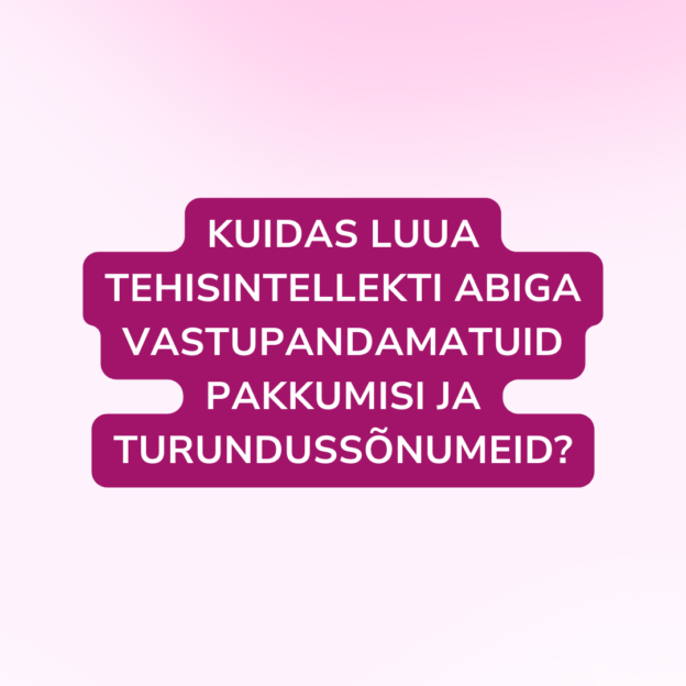 Kirjeldus: Kuidas luua atraktiivset pakkumist, POV`i ja turundussõnumit, kasutades AI abi? Kuidas planeerida sotsiaalmeediat ja müügitunneleid? ?
