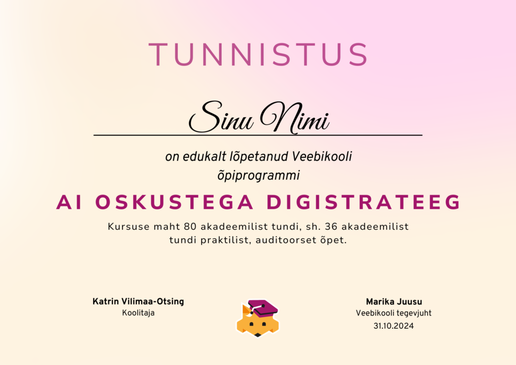 Saadame sulle Veebikooli alt kirja, kust leiad rohkem infot programmi kohta ja täpsema programmikava. Vaata igaks juhuks spämmkausta ka 🙏
